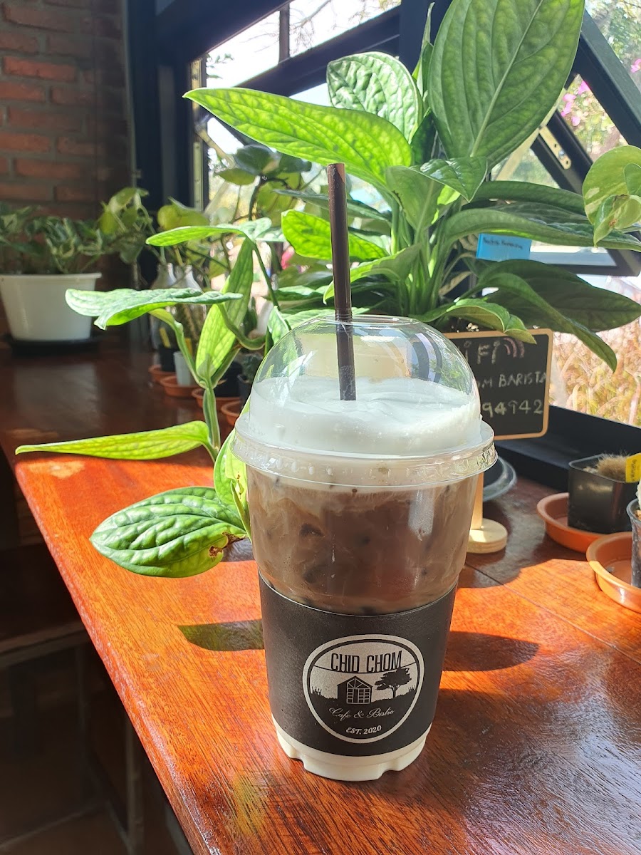 As you step inside, you'll be greeted by a cozy atmosphere featuring both indoor seating and a lovely garden area. Whether you choose to enjoy your beverage while enveloped by the subtropical greenery or prefer the comfort indoors, CHID CHOM balances chic design with a comfortable, rustic vibe. The café caters to a diverse range of visitors, from cyclists seeking a refreshing pitstop to families looking for a charming place to spend quality time together. The friendly owner, who speaks English, adds a personal touch to your experience, making you feel right at home.